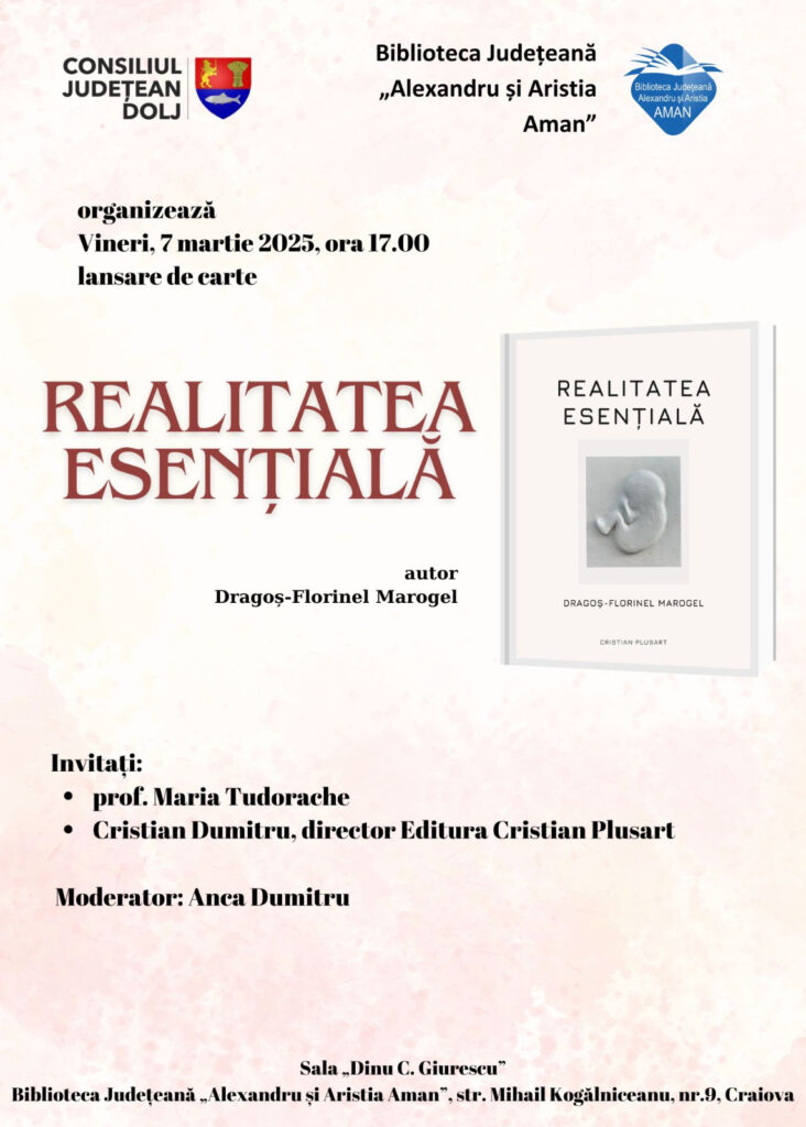 Biblioteca „Aman” și Editura Cristian Plusart anunță lansarea volumului „Realitatea fundamentală”, semnat de Dragoș-Florinel Marogel.