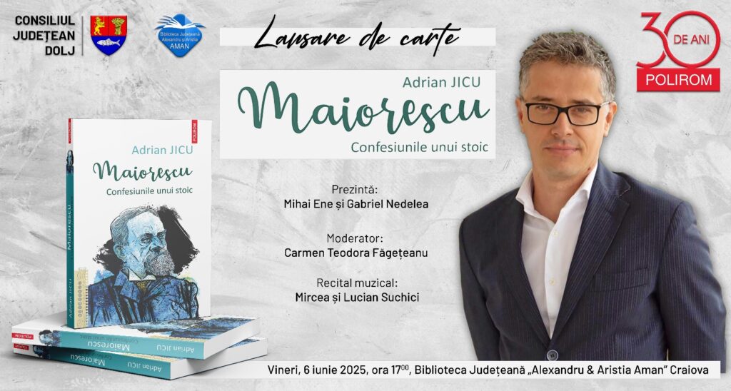 Biblioteca „Aman” prezintă lansarea volumului „Maiorescu. Confesiunile unui stoic”, semnat de Adrian Jicu.