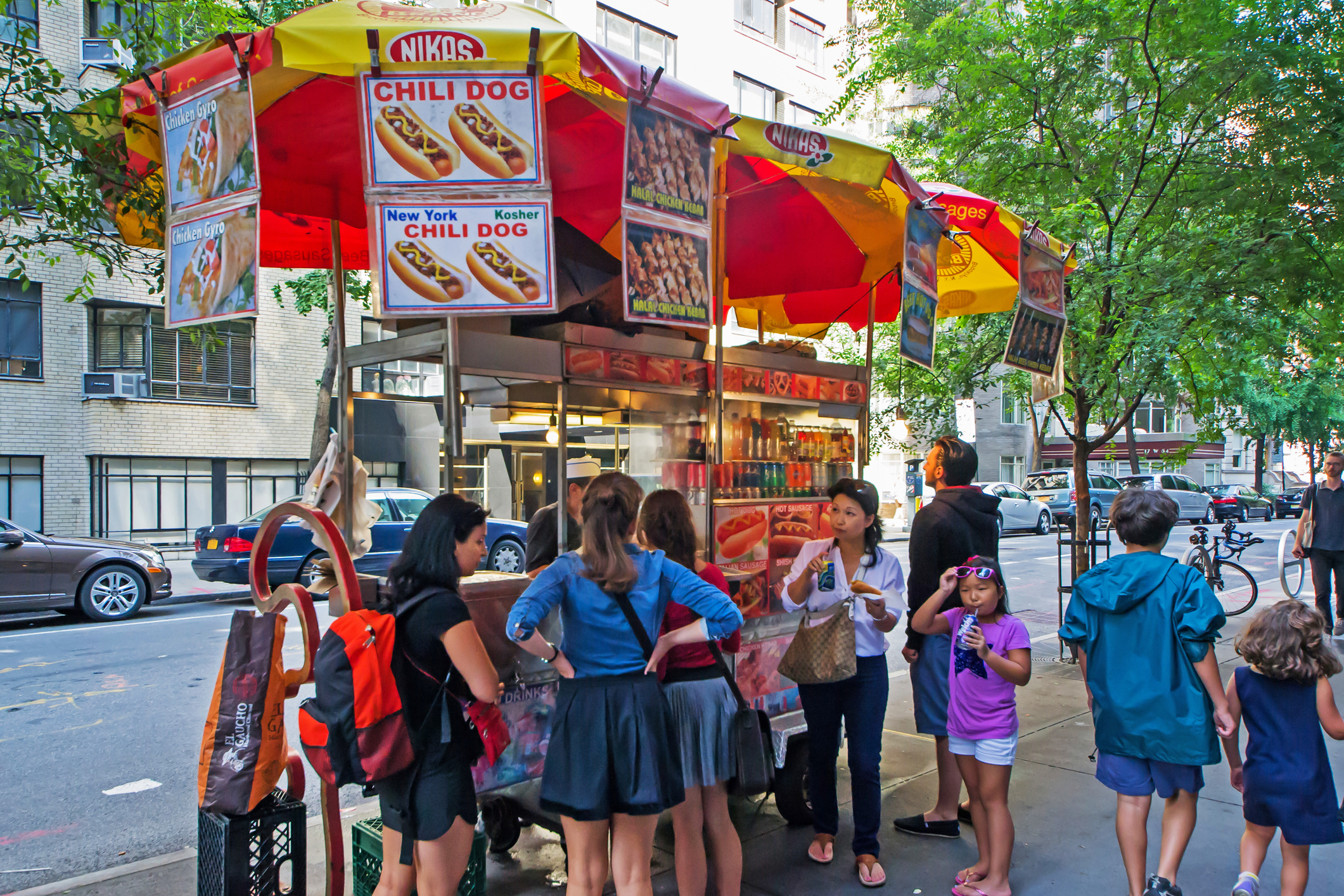 New York City, SUA – 3 august 2013: Persoane la coadă la un kiosk de hot dog din Manhattan. Imagine ilustrativă. FOTO: © Stefano Armaroli | Dreamstime.com