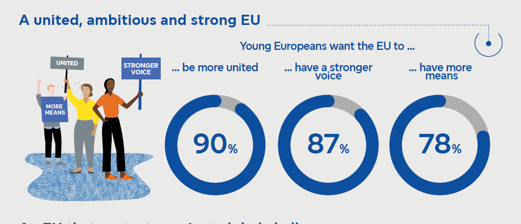 În ciuda temerilor, susținerea pentru apartenența la Uniunea Europeană rămâne ridicată. 62% dintre cetățeni consideră apartenența țării lor la UE ca fiind un aspect pozitiv, iar tinerii cu vârste între 15 și 30 de ani manifestă un nivel accentuat de suport pentru unitate, resurse sporite și influență internațională a UE.