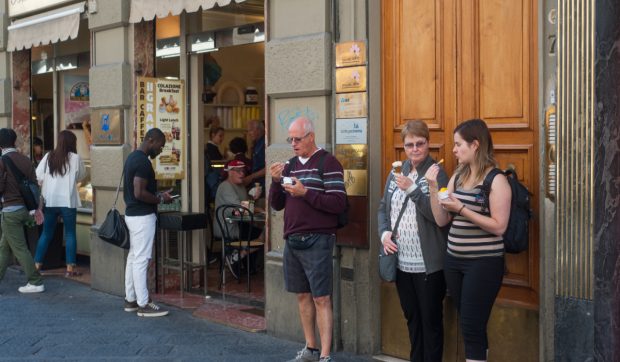 Consumarea gelato-ului sau a altor alimente pe stradă este interzisă în anumite părți ale centrului istoric între orele 12.00 și 15.00, precum și între 18.00 și 22.00. Această regulă a fost introdusă în 2018 pentru a reduce aglomerația și a proteja zonele incluse în patrimoniul UNESCO, cum ar fi Via de Neri, Piazzale degli Uffizi, Piazza del Grano și Via della Ninna.