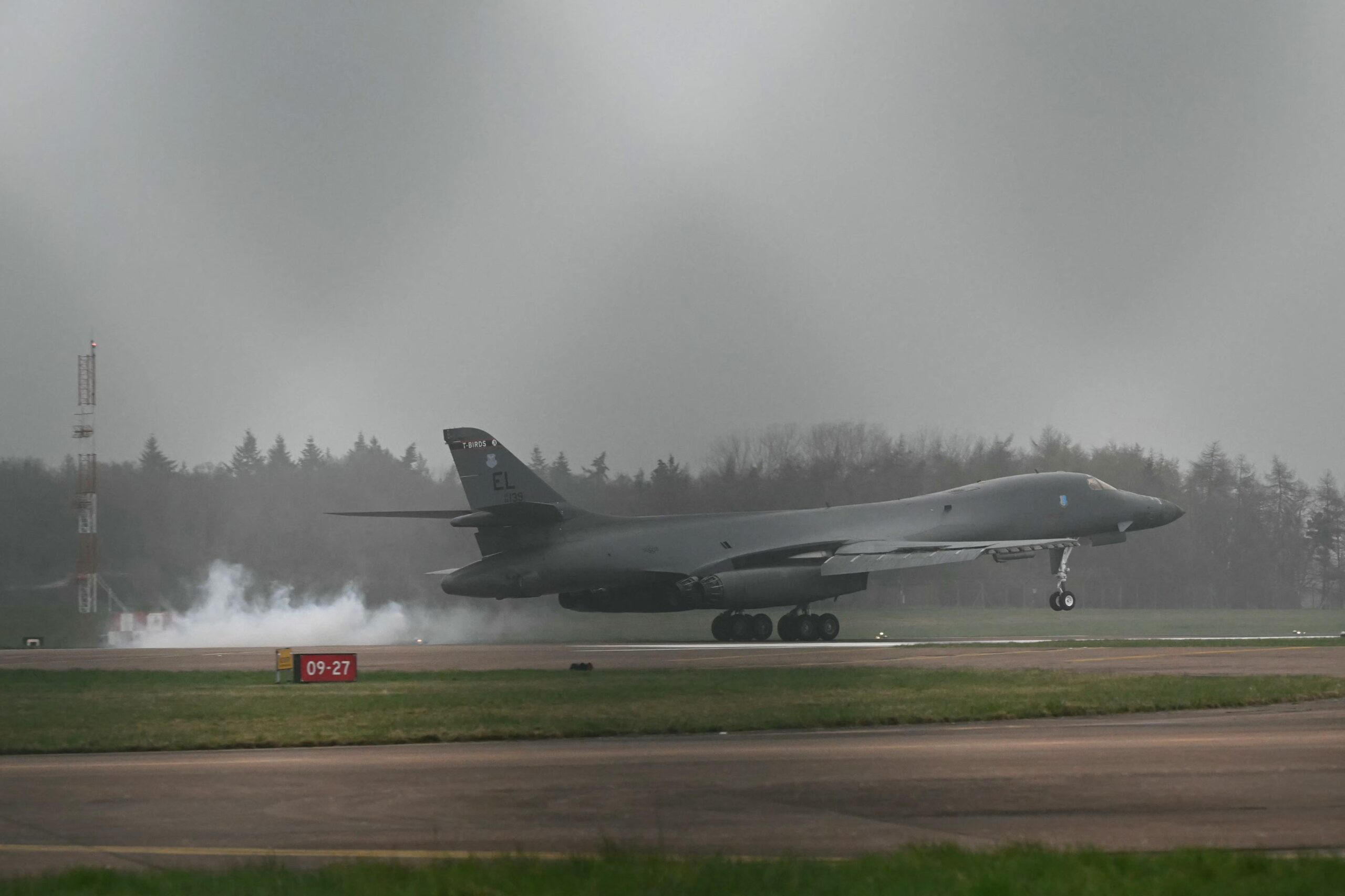 Un fotograf AFP a observat sâmbătă un bombardier B-1 Lancer al forțelor aeriene americane pe pista bazei Fairford.