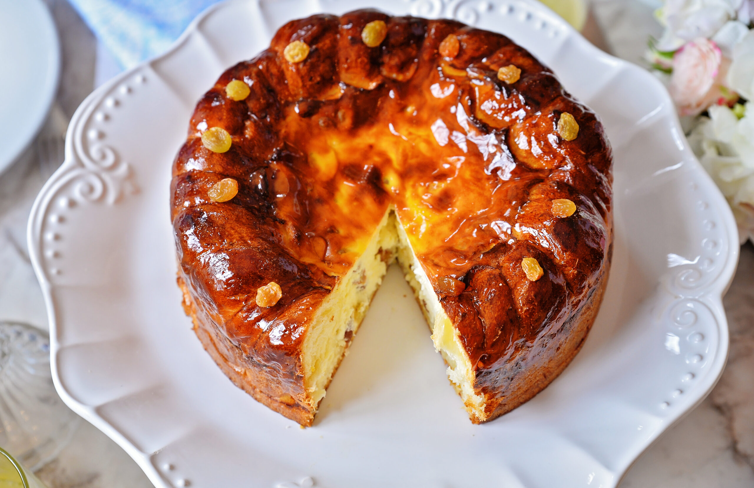 Rețeta oferită reprezintă o versiune modernizată a desertului tradițional, echilibrând un blat pufos de cozonac cu o cremă fină de brânză și stafide aurii. Ingredientele sunt atent selectate, iar modul de preparare implică un proces laborios, de durată, cu mai multe etape.
